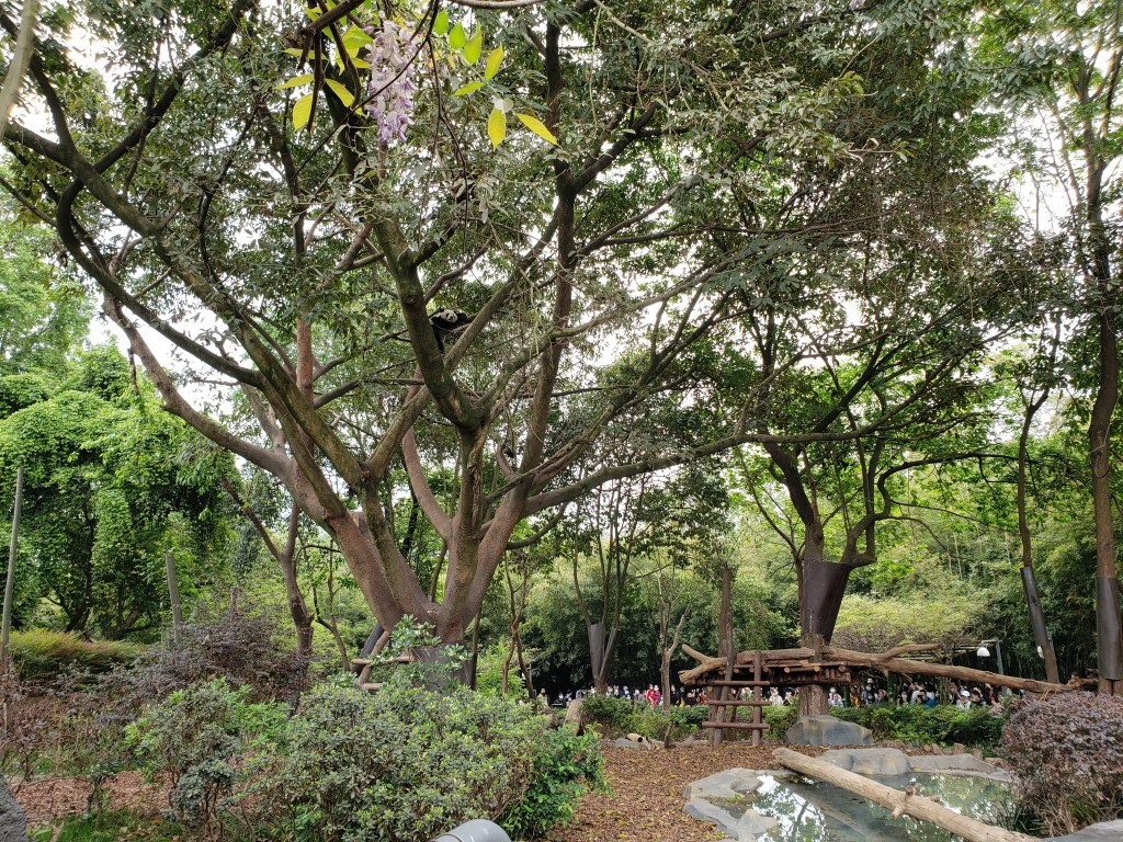 The animals can be observed while eating, playing, climbing and sleeping. It is very beautiful to look at and the crowd of spectators is watching every movement closely. The animals move rather slowly, but you can also see many adventurous moves. Interestingly, they are very good climbers (and even swimmers) and can often be found high up in trees. Nevertheless, many movements seem awkward and so there was always a murmur from the crowd when there was a risk of a panda falling down.