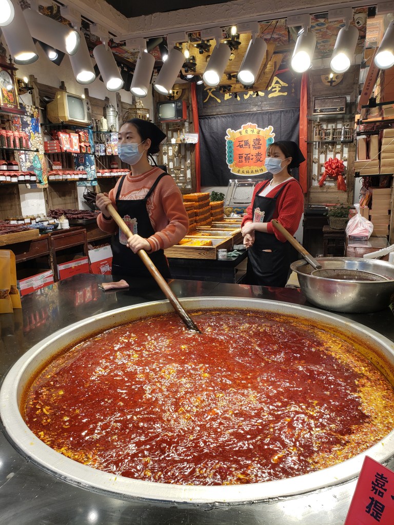 Not far from the temple complex we visited a pedestrian zone called Jinli Street (锦里古街). I have found that every Chinese city that attracts tourists has one or more centrally located pedestrian walking streets. There are usually souvenir shops, restaurants, bars, snack shops lined up next to each other and street vendors scurry around. No matter where I went in China, some types of stores kept repeating. I always tried to filter out and taste the local specialties. Such pedestrian zones were usually very busy, even unbearably overcrowded on public holidays.